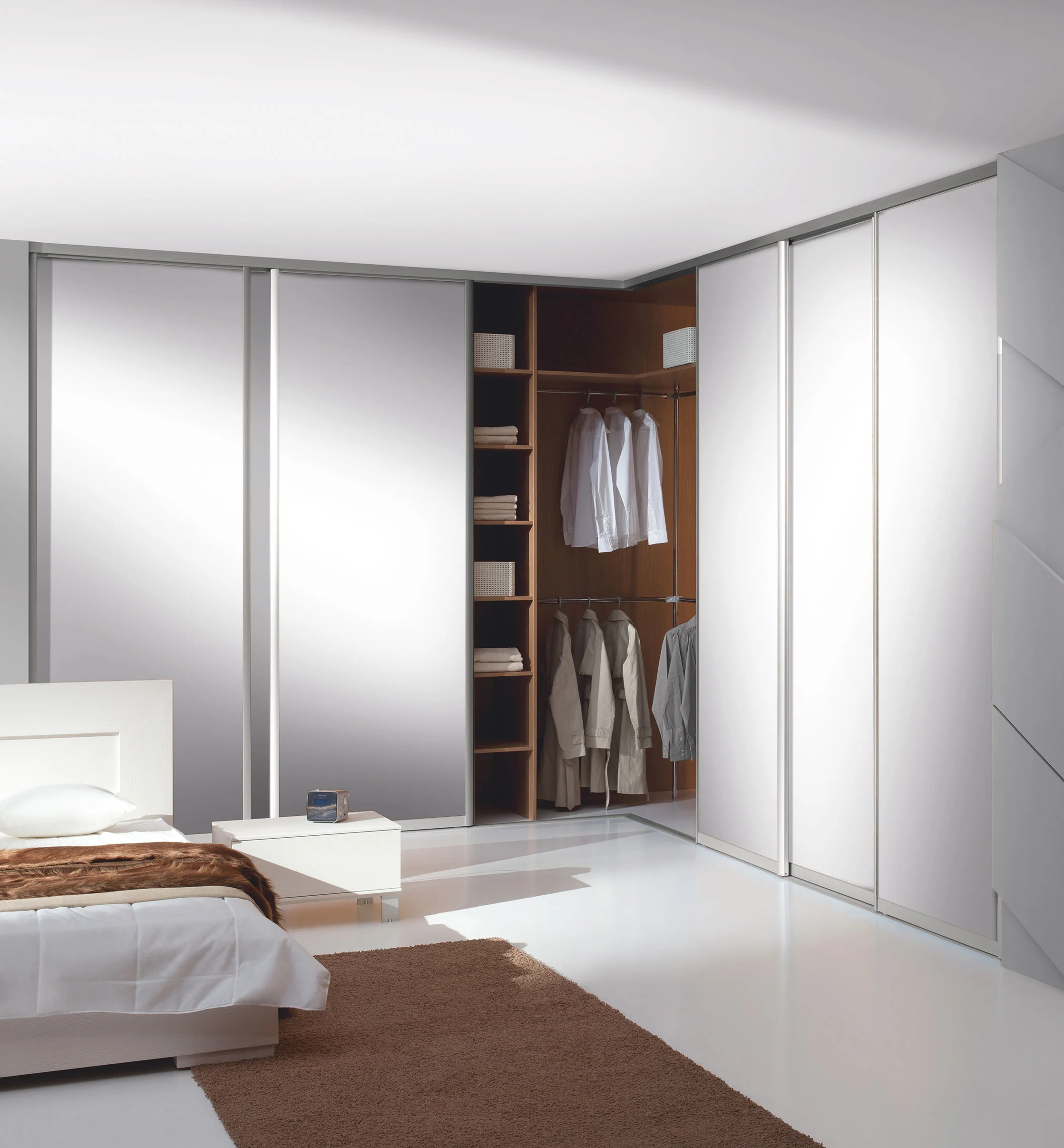 Les portes coulissantes sont idéales pour optimiser l’espace sans compromettre l’esthétique. Leur fonctionnement fluide et discret permet un gain de place tout en apportant une touche moderne et élégante à votre intérieur. Elles s’intègrent parfaitement aux dressings, placards ou séparations de pièces.